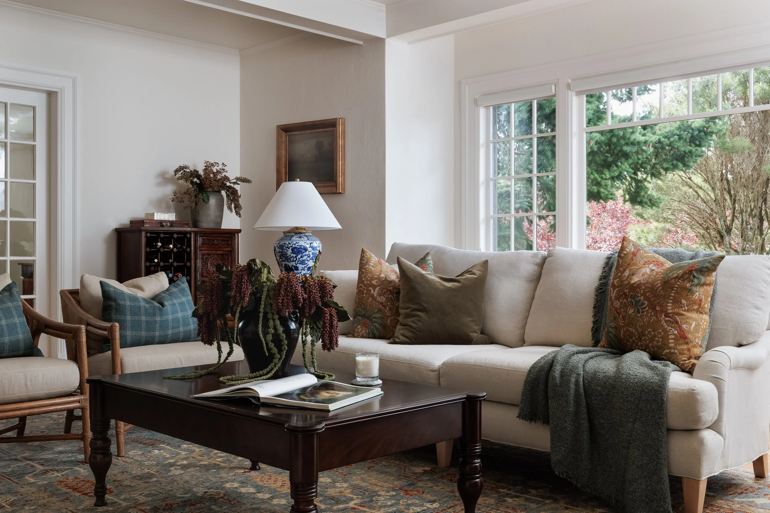 Aiming to recreate silhouettes representative of the home’s original plans, archived drawings guided our restoration of the original fireplace, reviving it as a historic focal point. Grounding the rest of the space with colourful linens, rich velvets, and elegant porcelain ceramics in an artistic nod to a rich history, Willowmere weaves a beautiful narrative of its past.